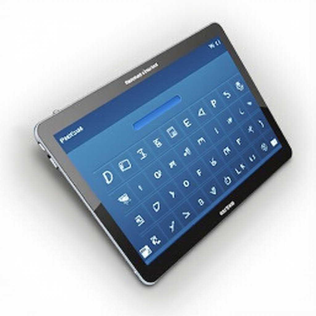La tableta Galaxy A8 está equipada con un teclado versátil de estilo QWERTY optimizado para pantallas táctiles. Esta disposición incorpora alfabeto, números y símbolos de manera fluida, y el símbolo de mayúsculas proporciona profundidad funcional a través de sus capacidades de alternancia. Comprender esta disposición empodera a los usuarios para mejorar significativamente la precisión al teclear.